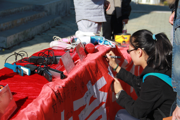 活动包括条幅签名和违规电器展示两部分。学生志愿者向同学们详细说明了违规电器的使用危害,倡导大家提高安全意识,远离安全隐患。活动得到学院师生的广泛关注和普遍认同,不少同学当场表态,今后坚决杜绝使用违规电器,齐心协力维护宿舍安全,共建平安校园。