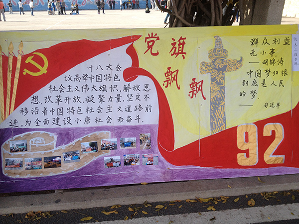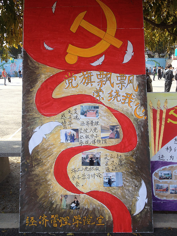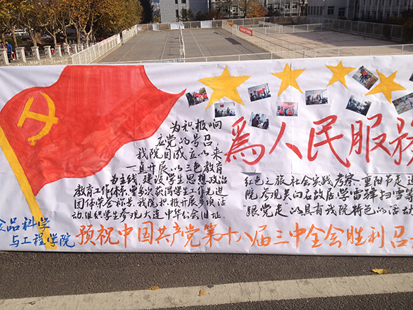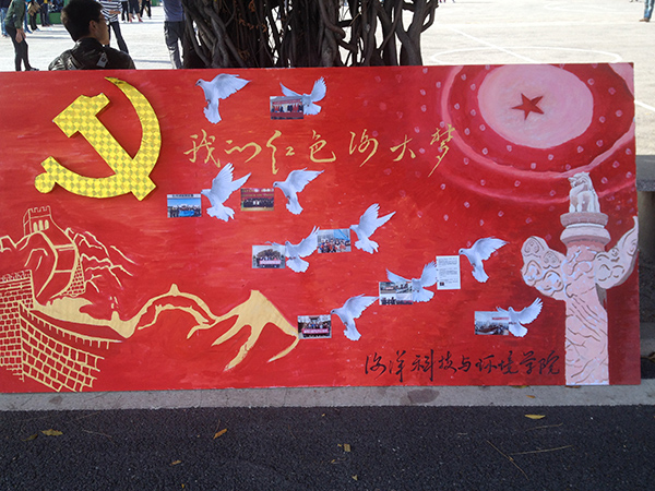 近期,由海洋科技与环境学院承办的第八届入党积极分子风采展示板报设计评比在青年路举行。本次活动通过展板共绘的形式表达了入党积极分子对党的十八届三中全会胜利召开的殷切盼望和对国家繁荣富强的美好祝愿。海洋科技与环境学院 供稿