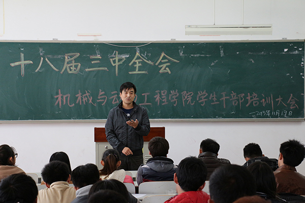 11月19日,机械与动力工程学院在獐子岛教学楼召开“党的十八届三中全会”学生干部培训会议。学院有关负责人及全体学生会成员参加会议。