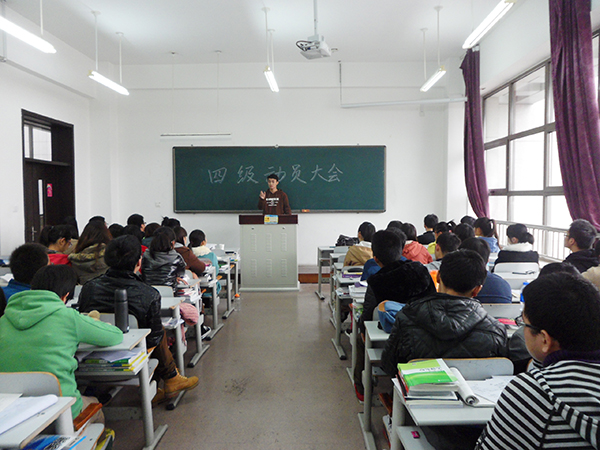 据悉,在大一第一学期期末参加英语四级考试是我校“蓝色英才班”学生可以享受的优惠政策之一。凭借“蓝色英才班”在主校区教学的优势,学院精心组织了英语四级动员大会,为英才班学子与高年级同学的互动交流搭建平台,增加了学生们的备考信心。今后,学院还将组织多种学习交流活动,积极推进“蓝色英才班”良好学风建设。
