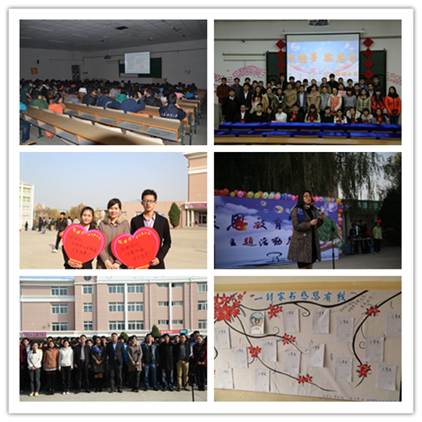 数场活动中,那些温情流露、感人至深的画面让人难忘。学生们在手语舞《感恩的心》中表达了“饮水思源”的深情;一张张形状可爱的爱心便签展示了“心与回报”的厚意;一只只温馨活泼的五彩气球放飞了“与爱同行”的祝福;一部部感人至深的影片体现了“心存感恩”的真谛;一封封满载情谊的“家书”将学子们对父母的思念寄到了千里之外的故乡。
