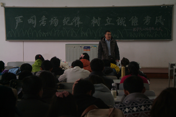 12月9日,理学院在獐子岛教学楼128、132教室分别举行11、12级“严明考场纪律,树立诚信考风”年级大会,学院有关负责人参加了会议。
