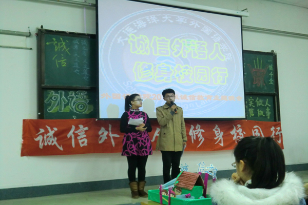 12月8日,外国语学院在渤海校区举办“诚信外语人 修身校园行”主题宣传教育活动。本次活动以团本支部为单位,2013级全体学生参加了活动。 外国语学院 供稿