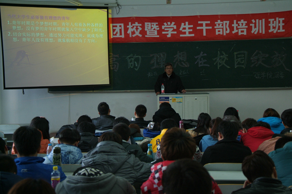 为使全体学生干部在思想意识上进一步明确自身职责,认真为同学服务,外塑形象,内强素质,12月12日,理学院在獐子岛教学楼126举办学生干部培训会议。学院党总支书记于振作、团委书记王建东出席本次会议。