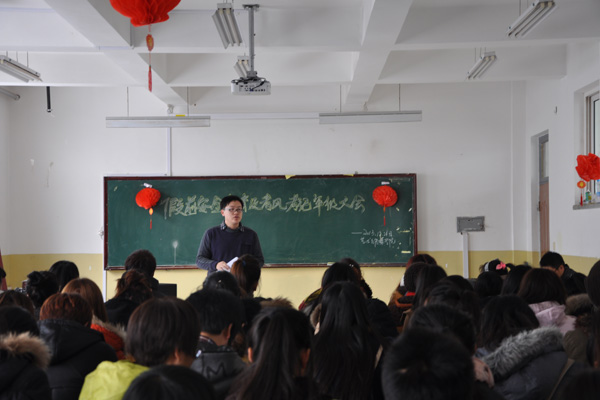会上,辅导员陈曦组织学生学习了《大连海洋大学考场规则与违规处理的规定》,号召全体学生严肃考风考纪,争当诚信模范,不要因为作弊而给自己的大学生活留下遗憾。他还向全院学生公布了学校2014年元旦放假时间及寒假注意事项,提醒广大学生离校时关好门窗、拔掉电源,在旅途中注意人身、财产安全,假期结束后按时返校。他希望大家寒假期间不要荒废学业,积极创作关于“年”的书画和摄影作品,并鼓励学生多到企业、社区等单位进行社会实践,为今后的求职之路打好基础。