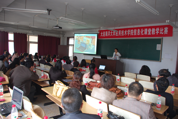 4月20日,应用技术学院在主教学楼619教室举办2014年信息化课堂教学比赛。学院11名教师参加了比赛,35周岁以下青年教师观摩了比赛。