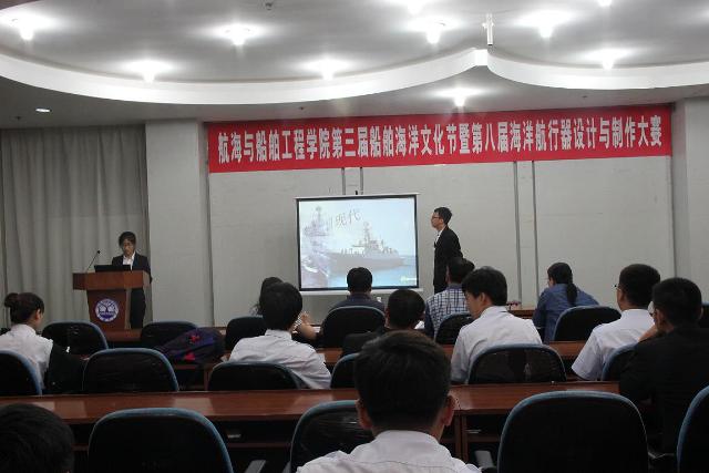 6月4日,由教务处、校团委主办,航海与船舶工程学院、大连海洋都船模协会共同承办的第八届海洋航行器设计与制作大赛在图书馆多功能厅隆重举办。大赛邀请航海与船舶工程学院教师张维英、刘大路、孙风胜、黄亚楠、于欣担任评委。三十多组近百余名选手参加了此次比赛。