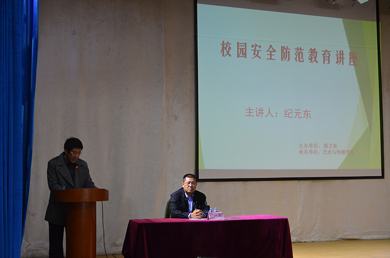 11月5日,保卫处处长纪元东在渤海校区第二阶梯教室作了题“校园安全防范教育”讲座。本次活动由保卫处主办、艺术与传媒学院承办。渤海校区全体辅导员及2014级新生代表近400人聆听了讲座。