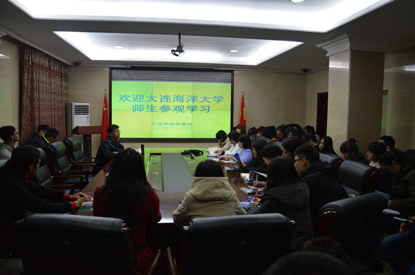11月7日,学院教师彭绪梅、翟翡、朱晓丹带队,组织行政2012级学生走访了大连市渔港监督局,活动得到市渔港监督局的大力支持,双方举行了座谈会,座谈会由办公室主任郭庆祝主持。监督局相关领导全面讲解了大连市渔港监督信息化管理的概况,介绍了精品民生工程项目——大连市海上渔船AIS避碰与近岸GPS救助信息终端系统,演示了信息操控系统并播放了海难救助实况视频。会后,向我校师生赠送了相关学习资料。