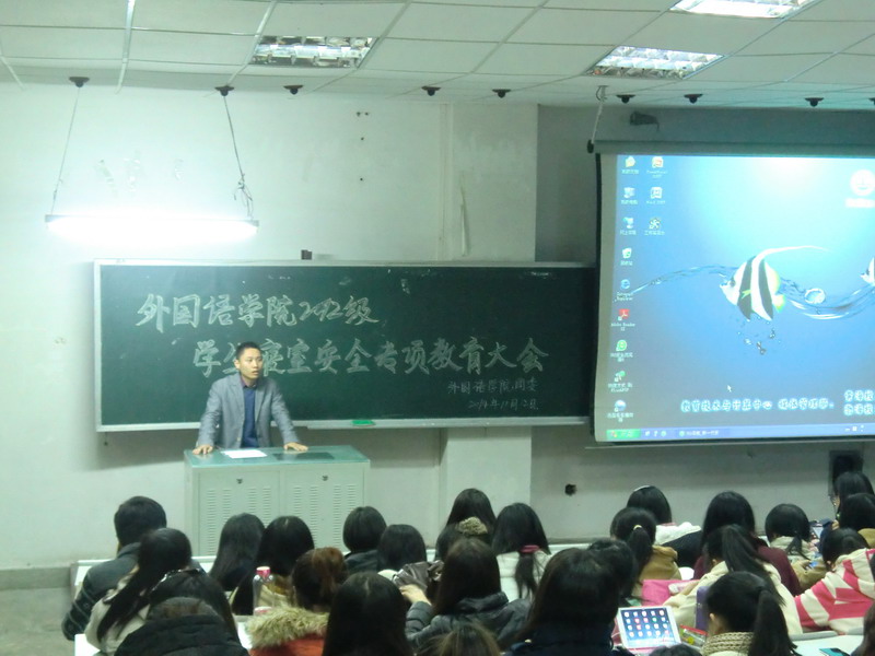 11月12、13日,外国语学院分别在黄、渤海两个校区分年级召开寝室安全专项教育大会。会议由学院党总支副书记吴鹏宇以及团委相关老师分别主持召开。4个年级共800余名学生参加。