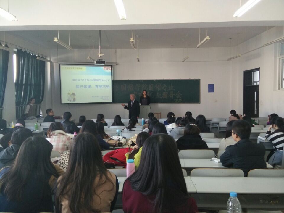 11月26日上午,外国语学院在獐子岛教学楼426室举办“日企面试技巧”就业指导会,泰克现代教育(大连)有限公司现代教育部部长川口順一先生应邀为2011级日语专业应届毕业生和2012级日语专业学生作培训。