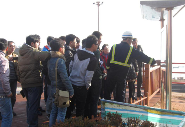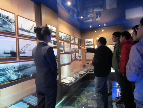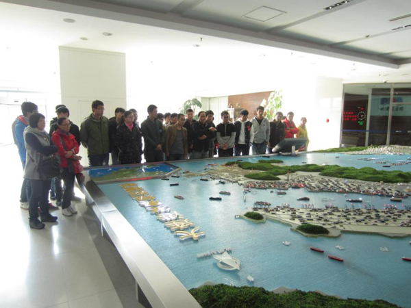 随后,师生们在大连港集装箱发展有限公司行政人事部行政主管曾光通、大连汽车码头有限公司技术工程部经理李欣陪同下先后参观了大连港发展规划模型、大连港展览馆,并到各大功能作业区参与实践,详细了解了大连港的发展历程、建设规划、大窑湾的整体布局和基本作用。