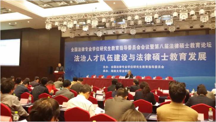 本次论坛由全国法律专业学位研究生教育指导委员会主办,海南大学法学院承办。教育部研究生司司长、国务院学位委员会办公室、司法部国家司法考试司司长等领导和来自全国180多所具有法律硕士培养院校的代表出席了会议。论坛围绕“法治人才队伍建设与法律硕士教育发展”主题展开讨论与交流。