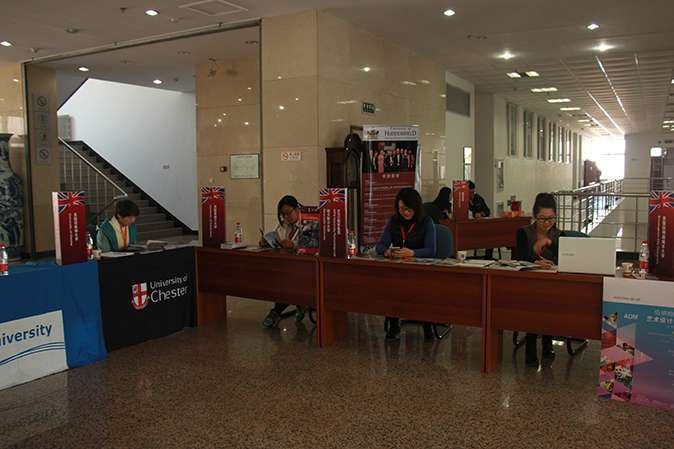 4月16日,由我校主办,琥珀教育集团承办的大连海洋大学英国高校教育展在文夫图书馆举行,展会邀请了包括英国哈德斯菲尔德大学、英国伯明翰城市大学在内的7所高校的驻华办公室负责人到会参展。