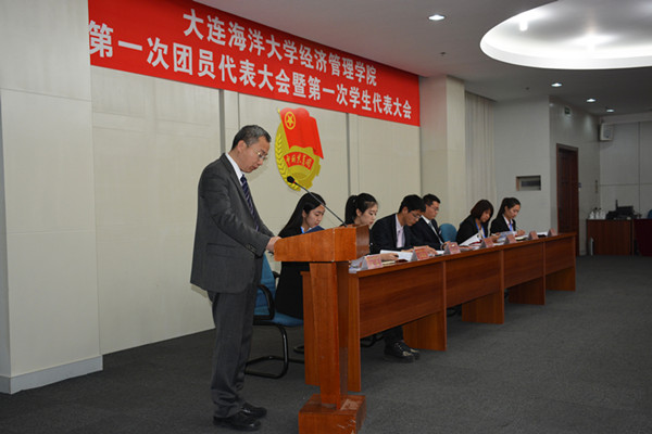 4月27日下午,共青团大连海洋大学经济管理学院第一次代表大会暨第一次学生代表大会在图书馆多功能厅召开。学院党总支书记王保良、党总支副书记于洋、学院团委书记刘富江及相关人员,90名团、学代表参加了大会。