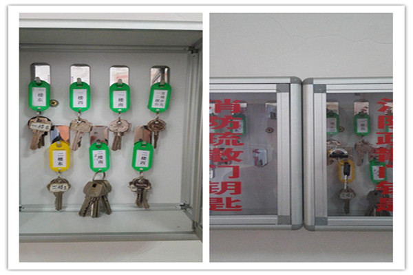 为加强校园消防安全,提高工作效率,实现快速及时反应,5月上旬,保卫处对全校27栋建筑物的每一个安全出口进行了开关测试,在各楼值班室安装了32个消防通道钥匙箱,共计363把消防通道钥匙,并给每一把钥匙配备了位置标示牌,注明了具体使用位置,实现了统一规范化管理。