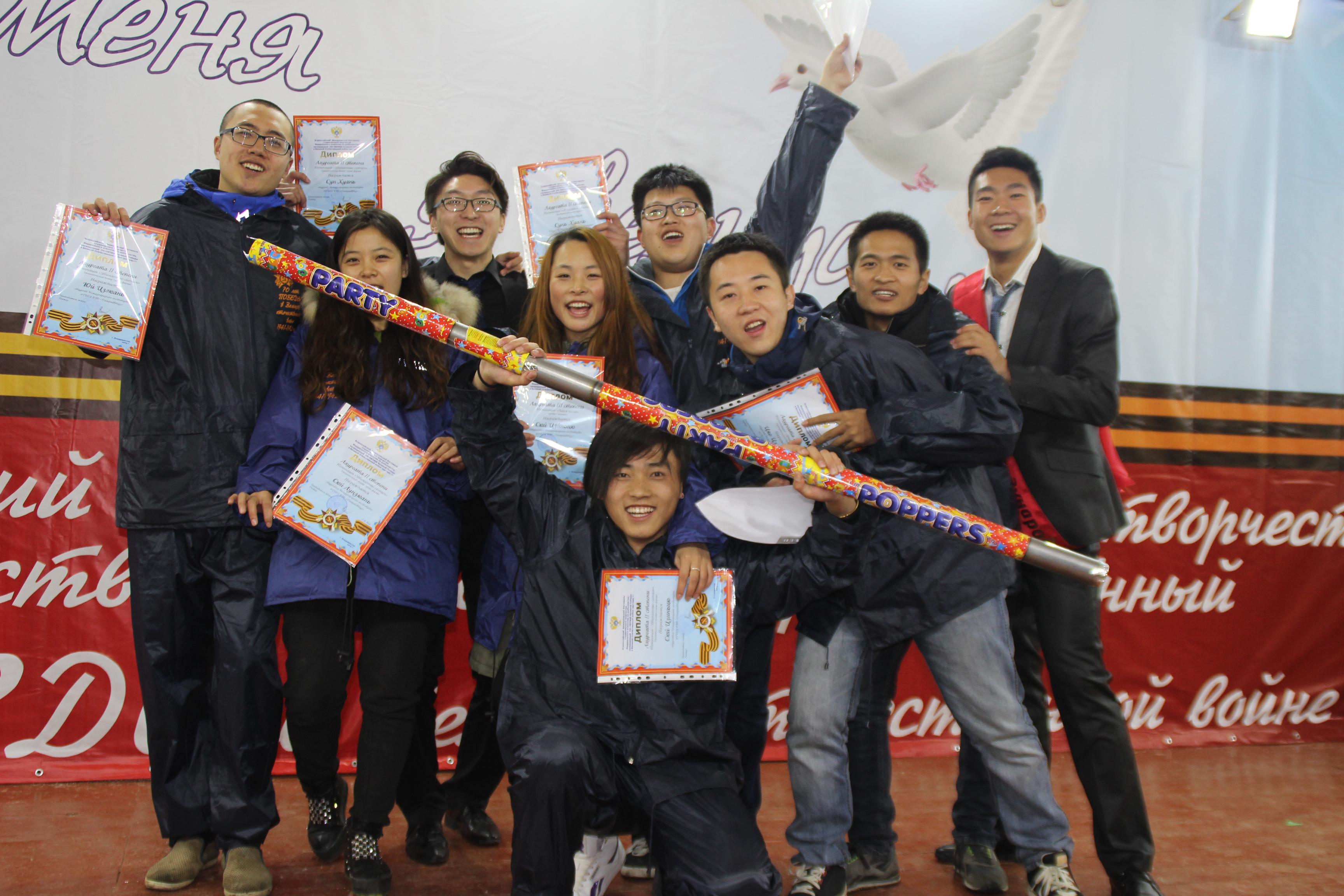 5月1日,我校留学生与俄罗斯学生一起参加纪念游行活动;5月4日,远东国立水产技术大学第十九届胜利日纪念文艺活动在小岛斯拉维扬卡举行。此次参加上岛活动的学生共有100人左右,参加人员都是经过严格的选拔筛选出来的, 其中我校有10名学生参加。此次活动历时4天,同学们以歌舞、话剧、诗朗诵、选美等形式共同庆祝纪念日。