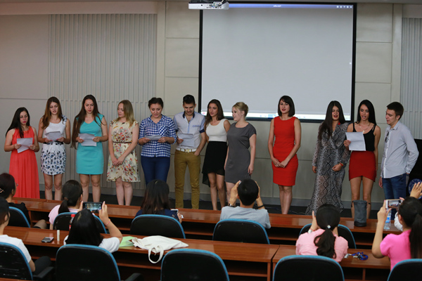 毕业留学生代表韩国留学生沈天恩、俄罗斯留学生安塔妮娜以多种形式回忆了他们的大学生活,表达了对大连海洋大学和各位老师的感激之情,表示会把在这里学到的知识带回祖国,向本国人民介绍中国,传播中华文化,努力做文化交流的使者和友谊的传播者。