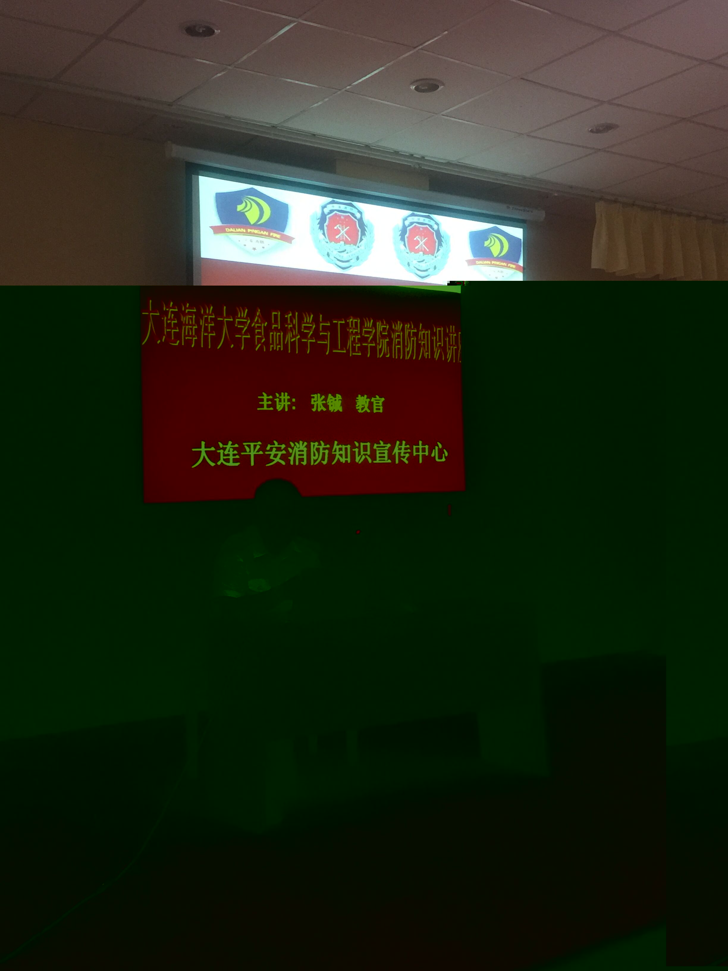 大连平安消防知识宣传中心教官张铖为学生作了消防知识讲座。张铖教官特意针对高校人员密集和学生宿舍楼层高的特点为大家讲解了很多高校火灾案例,并为大家详细教授了如何在火灾现场逃生、灭火及求救知识。