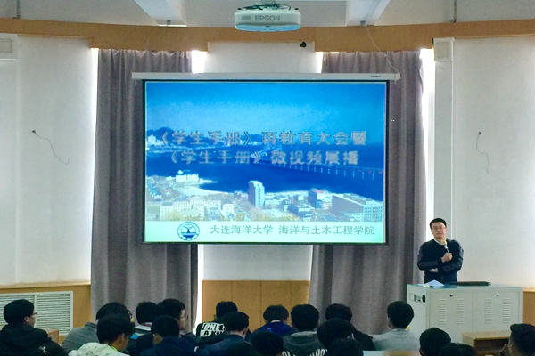 3月31日,海洋与土木工程学院在渤海校区开展《学生手册》视频展播教育,2015级学生参加活动。