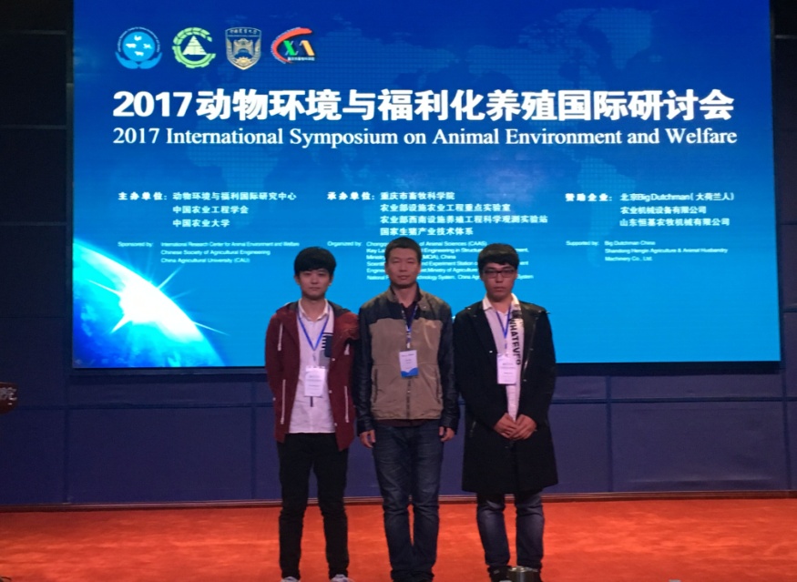 10月24日—26日,“2017动物环境与福利化养殖国际研讨会”在重庆召开,我校机械与动力工程学院教师母刚带领2016级研究生陶宁和李鑫龙参加了会议。本次会议由动物环境与福利国际研究中心、中国农业工程学会和中国农业大学主办,重庆市科学技术委员会、重庆市畜牧科学院、农业部设施农业工程重点实验室联合承办。共有来自12个国家和地区的高校和研发机构的300余名专家代表参加会议。