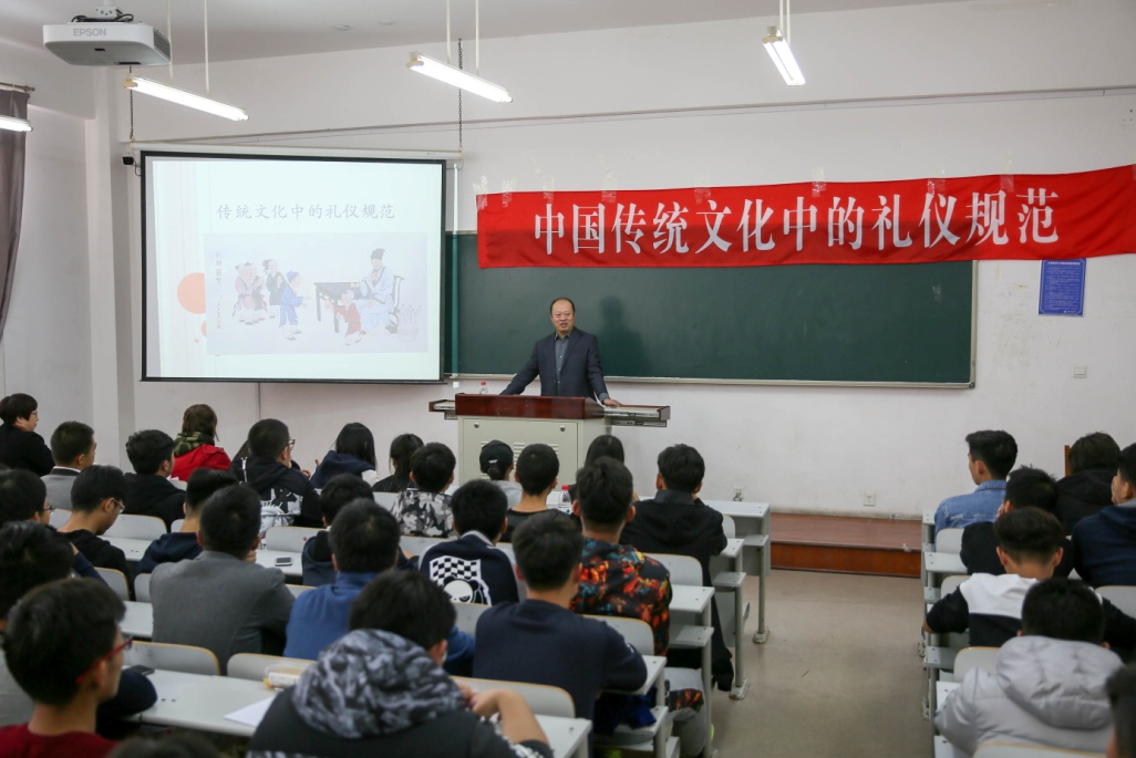 王太海结合古今中外的许多生动实例,从礼仪的由来、礼仪的重要性、中国传统礼仪的特点及要素等方面进行了精彩的讲解,向学生们详细阐释了弘扬传统文化中礼仪规范的目的性、学习传统礼仪应注意的问题以及学习传统礼仪应持有的态度。讲座主题鲜明、内容丰富,在场学生深深地被中国传统文化的魅力所吸引。