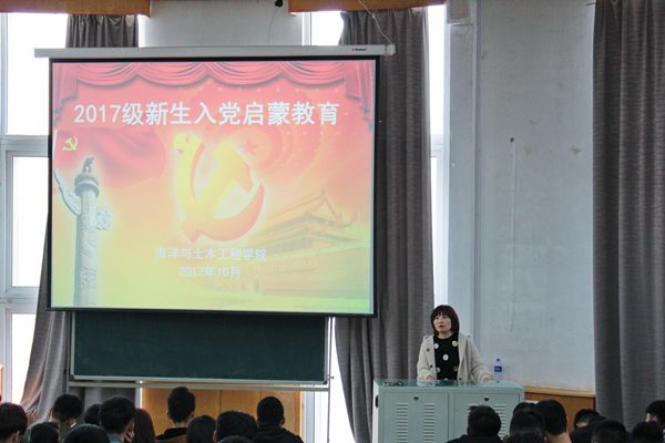 11月1日,海洋与土木工程学院在渤海校区第三阶梯教室召开2017级入党启蒙教育大会。2017级全体学生参加大会,会议由海洋与土木工程学院党总支副书记谭利娟主持。