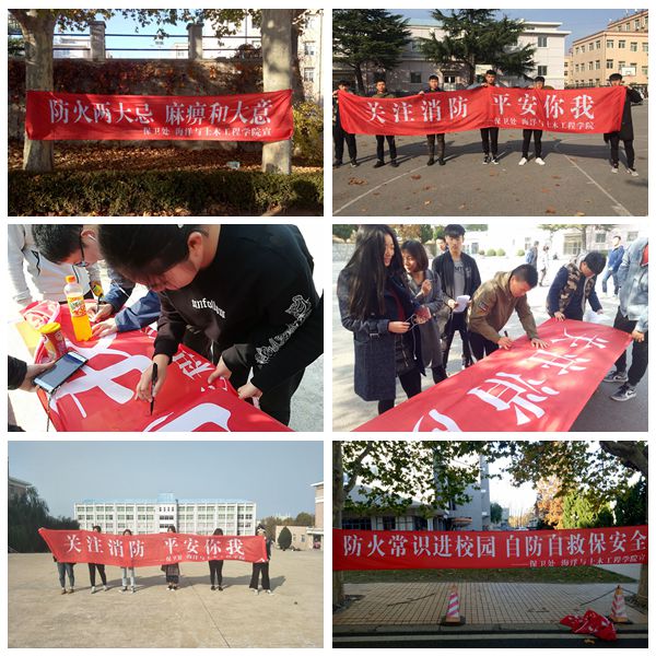 11月9日,以“关注消防,平安你我”为主题的消防安全宣传日签名活动在黄海校区与渤海校区同时进行,此次活动由保卫处主办,海洋与土木工程学院承办。