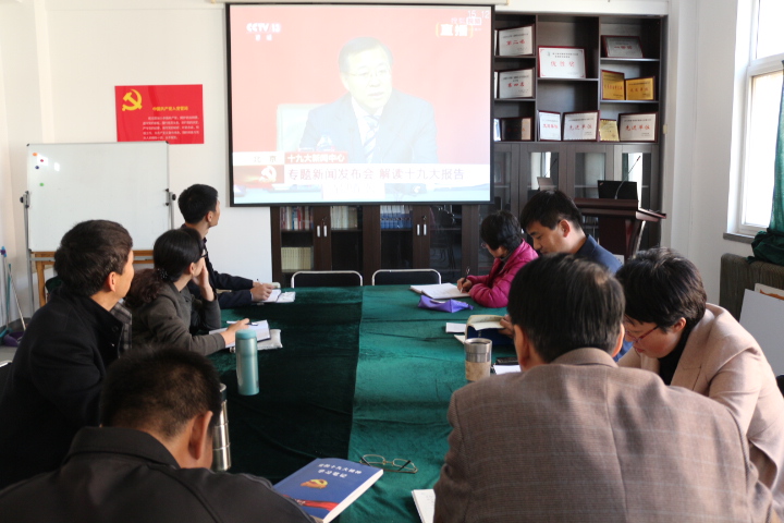 会上,与会成员共同观看了“中国共产党第十九次全国代表大会新闻发布会”视频。李俊柱总结发言中指出,视频中对十九大报告的解读极其深刻,全院上下要学习宣传贯彻好党的十九大精神,将其作为当前和今后一个时期的首要政治任务,紧紧抓在手上、牢牢记在心上,充分发挥学院党总支中心组学习的示范带动作用和舆论宣传引导作用,推动全院学习宣传贯彻十九大精神工作的全面开展。