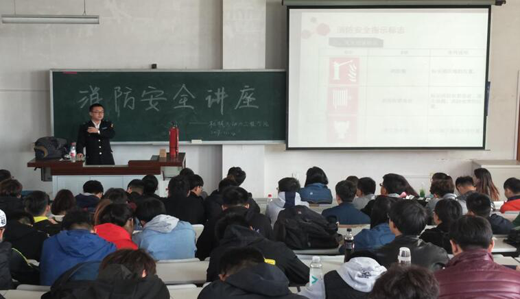 讲座以两个典型火灾案例切入话题,使同学清晰地认识到防火意识的疏漏引发的严重祸患。从电器使用展开详述,由手机充电、电路老化、插座故障、大功率电器的使用等安全隐患警醒学生注意电器的合理使用。现场演示了灭火器的正确使用方式,讲解了其他消防器材的使用,重点强调了火灾发生时的疏散逃生方案及常闭式防火门的使用,得到了同学们的热切关注,扩展了同学们的消防安全知识。