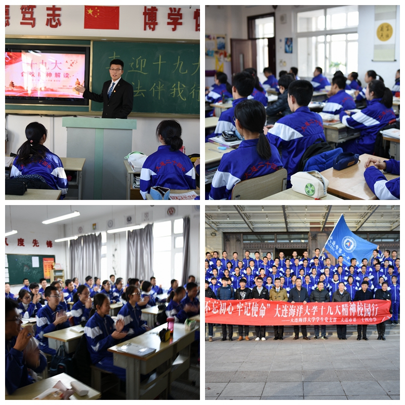 11月24日,海洋与土木工程学院宣讲“十九大精神”系列活动走进大连市第二十四中学,下午3点,宣讲活动在大连二十四中高一七班进行。