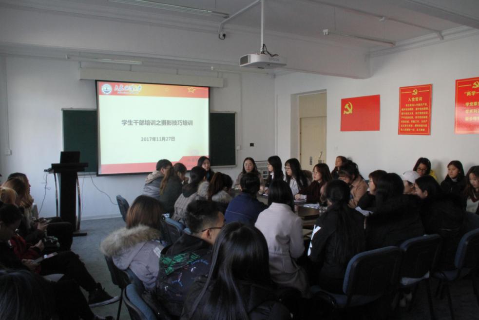 11月27日,外国语学院学生会全体成员于一教206召开例会并举行学生干部摄影技巧培训,学生会全体成员参加会议,会议由学生会主席宋蕾主持。