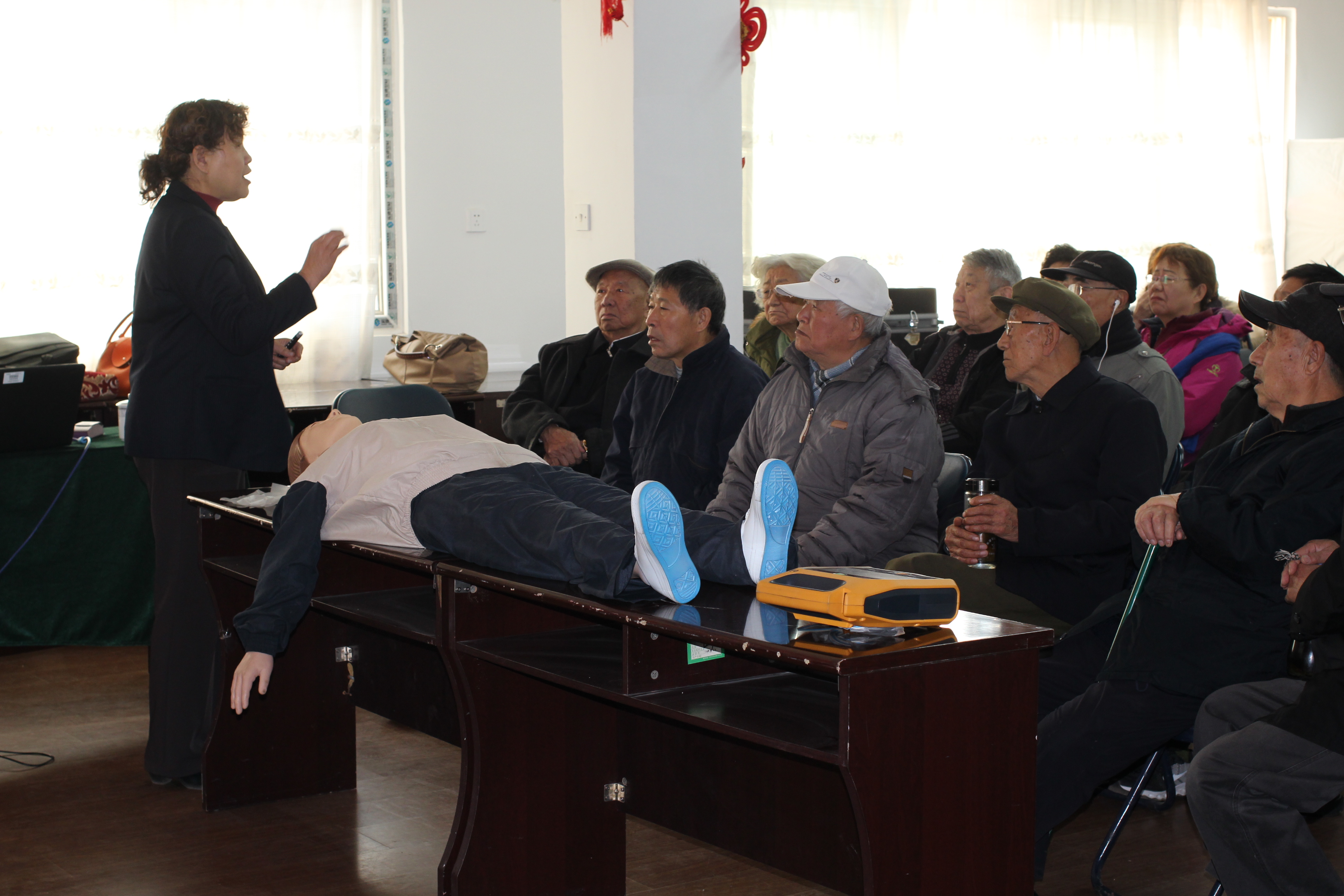 庄珊珊用身边典型案例为老同志们送上了一堂精彩的常见急症和心肺复苏急救知识讲座。并专门带来了人体模型,以该模型模拟急救,使讲座更加生动形象。通过讲座,使离退休老同志们了解了日常老年人突发疾病识别,掌握了实施救援的具体步骤和基本的急救技能。