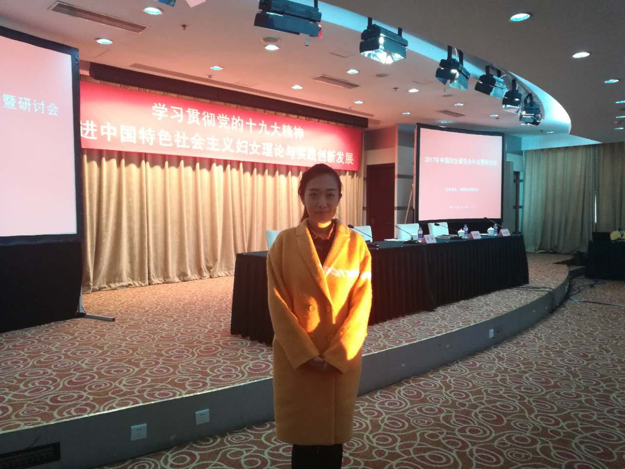 11月28-29日,2017年中国妇女研究会年会暨研讨会在北京召开,会议主题为“学习贯彻党的十九大精神,推进中国特色社会主义妇女理论与实践创新发展”。全国妇联主席、中国妇女研究会会长沈跃跃在开幕式上讲话,全国妇联副主席、书记处书记、中国妇女研究会副会长谭琳主持开幕式并做会议总结。中国妇女研究会副会长叶静漪、张李玺、苏凤杰、叶文振出席会议,我校经济管理学院辅导员王欣然撰写的论文《新媒体语境下女性媒介话语权现状研究:以我国女性网站为例》由大连市妇联推送,成功入选本次会议。会上,王欣然在“优化妇女发展的社会文化环境”专题中做了发言。