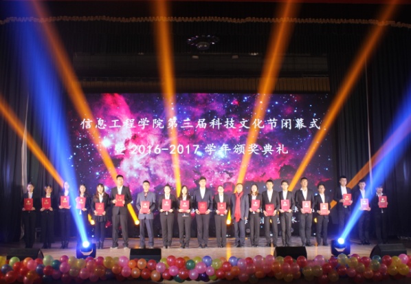 12月10日下午,信息工程学院第三届科技文化节闭幕式暨2016-2017学年颁奖典礼在俱乐部隆重举行。信息工程学院领导班子成员,蓝鸥科技大连有限公司教学总监孟宪义,文海思创信息技术有限公司总经理许罡,文海思创信息技术有限公司市场部经理李广强,学院各教研室主任、班导师、学生工作者及全院学生参加了本次典礼。