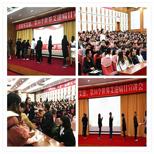 活动现场,由4名同学演唱的世界艾滋病日主题曲——《瞳孔里的太阳》拉开帷幕。我校的红十字会干事为同学们详细讲解了有关艾滋病的传播途径和预防措施。反歧视公益短片《永远在一起》、有奖问答、快乐传真等丰富的互动环节让同学们更加深入、清晰地了解了艾滋病,也更加重视生活中对艾滋病的预防。同时,活动还倡导同学们理性面对艾滋病患者,共同关心和帮助受艾滋病人,做到“知病理、不歧视”。