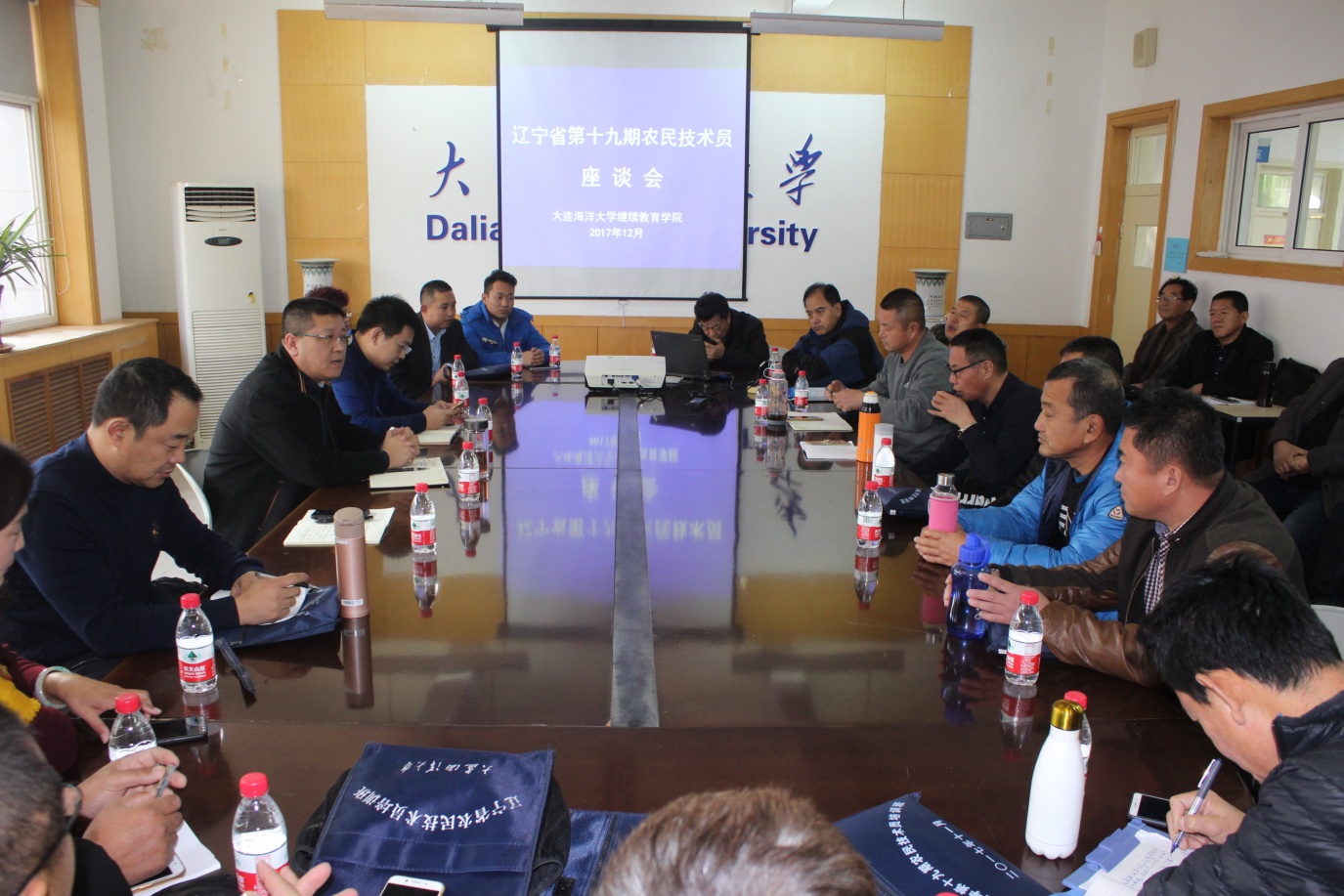 12月11日下午,第十九期辽宁省农民技术员培训班座谈会在渤海校区会议室召开,继续教育学院院长纪元东、团委书记常青,培训班班主任张俊翔及30余名农民技术员代表参加了座谈会。座谈会由张俊翔主持。