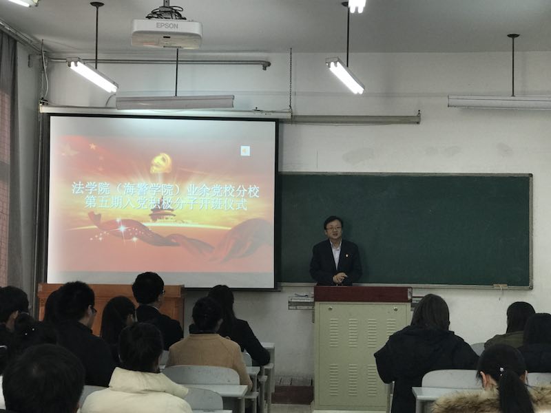 12月13日下午,法学院(海警学院)在渤海校区二教217教室举行入党积极分子开班仪式。开班仪式由学院副院长滕鹏主持。