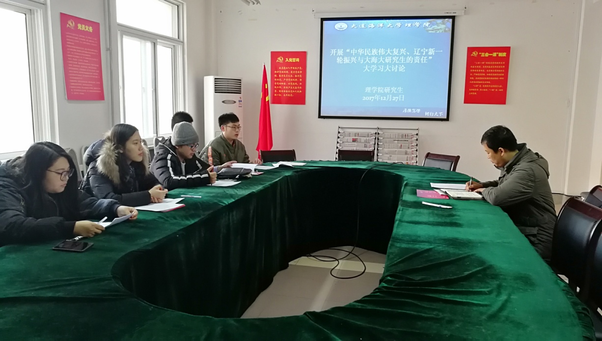 2017年12月27日,理学院在学院会议室举办“中华民族伟大复兴、辽宁新一轮振兴与大海大研究生的责任”学习讨论会。会议由副院长迟建卫主持,研究生党员和2017级全体研究生参加了此次会议。