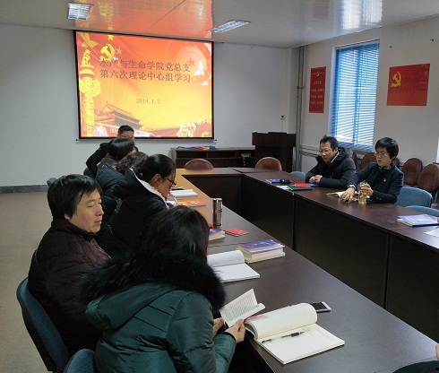 1月2日,水产与生命学院党总支理论学习中心组在学院会议室开展十九大精神第六次集中学习。学院党总支理论学习中心组成员、各党支部书记参加学习,学习由学院党总支书记邱金英主持。