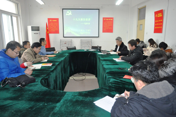 1月10日下午,理学院在学院会议室举办党的十九大报告主题党课宣讲活动,学院党总支书记于振作担任主讲,学院全体党员参加活动。