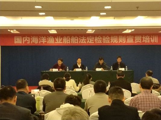 根据农业部渔业船舶检验局法规宣贯工作的统一部署,受辽宁渔业船舶检验局委托,由我校航海与船舶工程学院承办的《渔业船舶法定检验规则(船长大于或等于12m国内海洋渔业船舶2017)》北方片区宣贯培训于1月30日—2月2日在大连良运大酒店举行。农业部渔业船舶检验局法规处副处长级调研员杜广东,辽宁渔业船舶检验局局长潘旭仁、副局长汪滔,我校航海与船舶工程学院党总支书记李俊柱出席开班仪式,来自辽宁、河北、天津、山东、江苏等五个省(市)的渔船检验机构验船师及骨干船舶修造企业的设计人员近170人参加培训。开班仪式由汪滔主持。