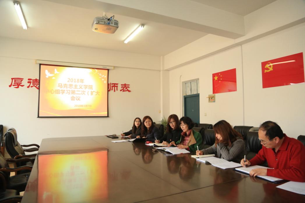 3月7日上午,马克思主义学院在学院会议室召开2018年第二次党总支理论学习中心组学习(扩大)会。学院党总支理论学习中心组成员、各党支部书记参加会议。会议由党总支书记王丹主持。