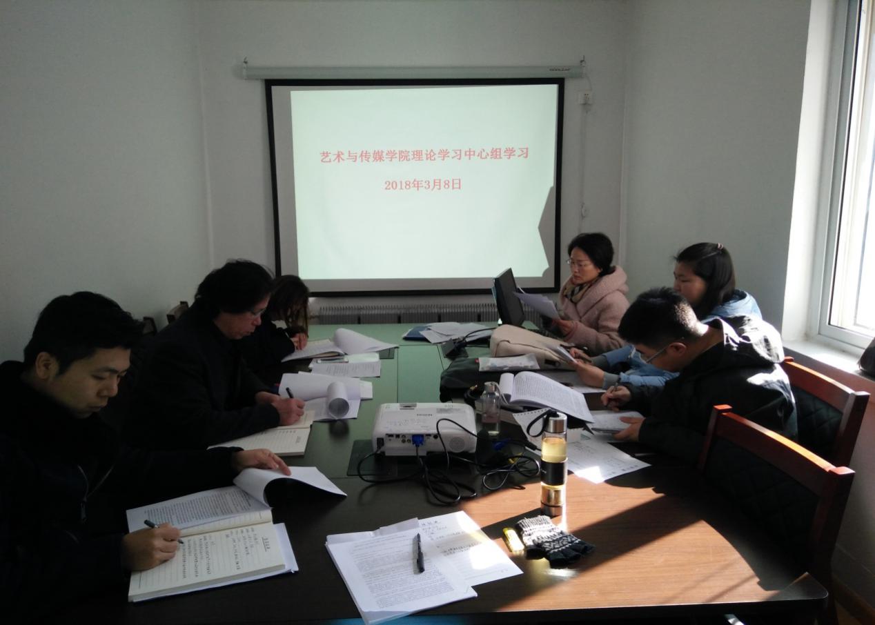 3月8日,艺术与传媒学院理论学习中心组在黄海校区学院综合办公室召开专题学习会议,学院理论学习中心组成员参加学习,会议由学院党总支书记丁立华主持。