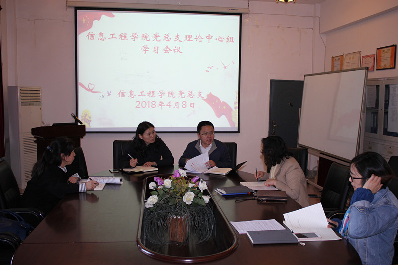 4月8日,信息工程学院党总支理论学习中心组在学院会议室组织学习活动。会议由学院党总支书记杨建明主持,学院党总支理论学习中心组长、委员参加学习。