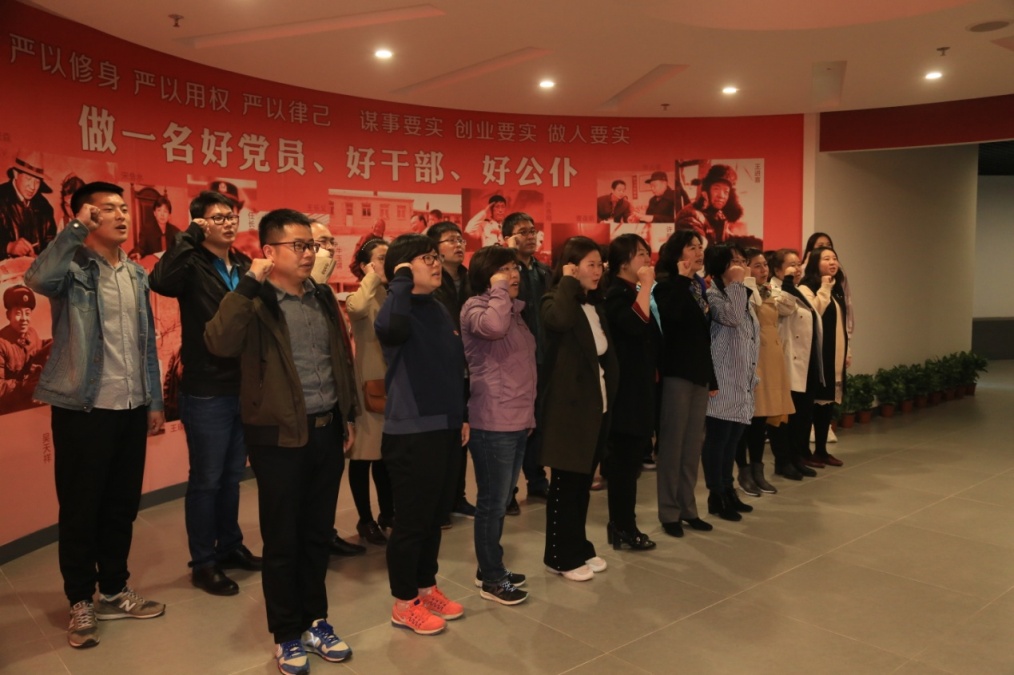 大连市反腐倡廉警示教育基地以详实的文字、图片展示了 “腐败预警篇”、“腐败行为篇”、“腐败后果篇”、“腐败根源篇”、“借鉴警示篇”等五个部分内容。全体党员在讲解员的引导下,认真专注地观看每一块展板和每一个案例。一个个催人警醒的反面典型,一个个鲜活的案例,使大家思想上备受震撼,进一步认识到腐败对国家、对人民、对家庭、对自身的危害。最后,全体党员进行了重温入党誓词的宣誓仪式。