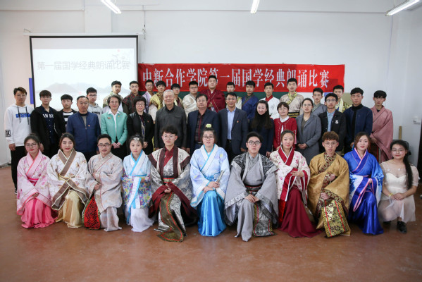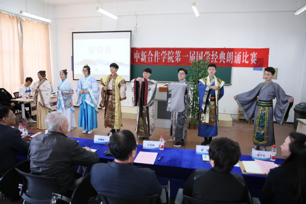 4月11日下午,“中新合作学院第一届国学经典诵读比赛”在獐子岛教学楼609教室举行。我校关心下一代工作委员会委员张耀林、中新合作学院关工委常务副主任吕显强、中新合作学院领导班子成员、国际教育学院汉语教师担任本次比赛评委。来自学院6个班级的12组选手参加了比赛。