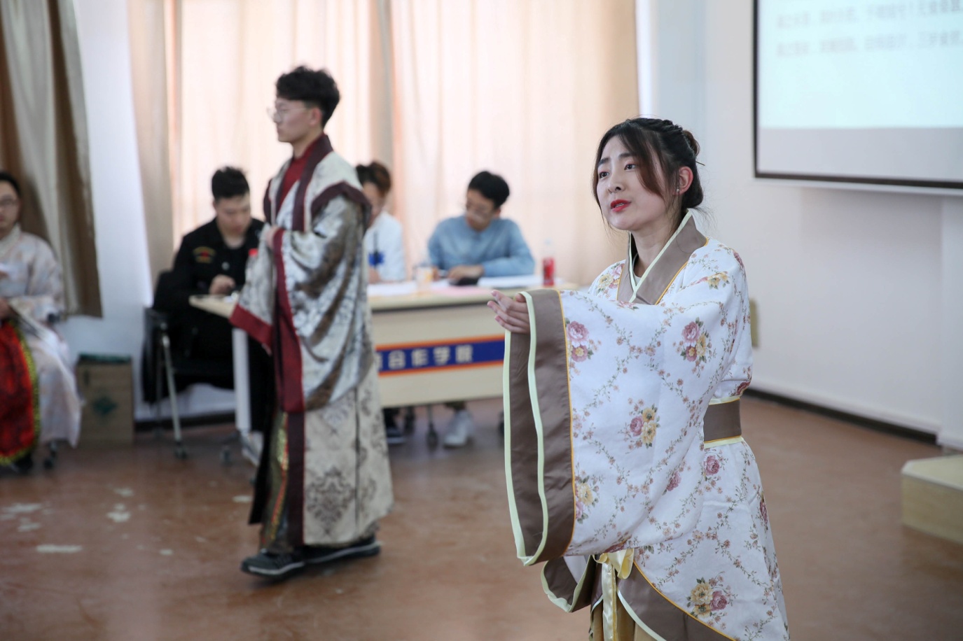 比赛的最后进行了汉服表演。同学们向大家展示了汉服的庄重、优雅之美,阐释了汉服所包含的丰富深刻的精神文化内涵。