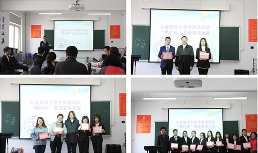 为了提高学院英语专业学生的“听、说、读、写”能力,创建良好的语言交流平台,4月14日下午,外国语学院成功举办了“枫叶杯”英语演讲比赛。专业英语教研室教师郭宝申、韩春侠、崔永光和张莹担任比赛评委。