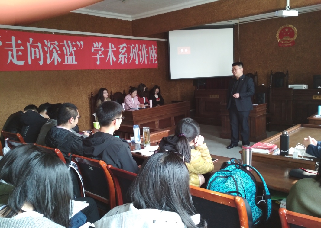 4月18日,法学院(海警学院)在黄海校区模拟法庭举办了第51期“走向深蓝”学术系列讲座。本次讲座由辽宁誉晟律师事务所副主任、高级合伙人张自强律师担任主讲,讲座主题是法律职业规划与青年律师成长规划。学院法律硕士研究生和部分教师聆听了本次讲座。